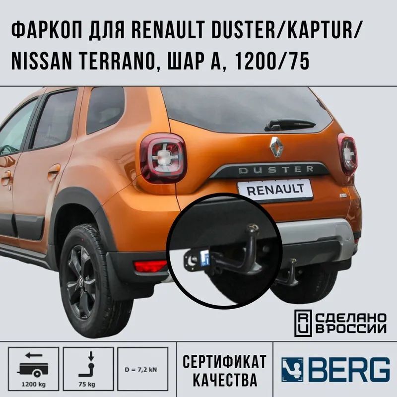 Фаркоп BERG, Renault Duster (2010-2015, 2015-2020, 2020-), Renault Kaptur (2016-2020, 2020-), Nissan Terrano (2014-), шар А, 1200/75 кг.