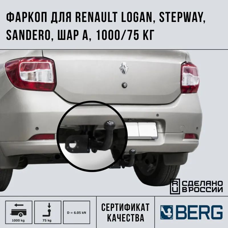 Фаркоп BERG Renault Logan (2014-), Logan Stepway (2018-), Sandero (2014-), Sandero Stepway (2014-), шар A, 1000/75 кг.