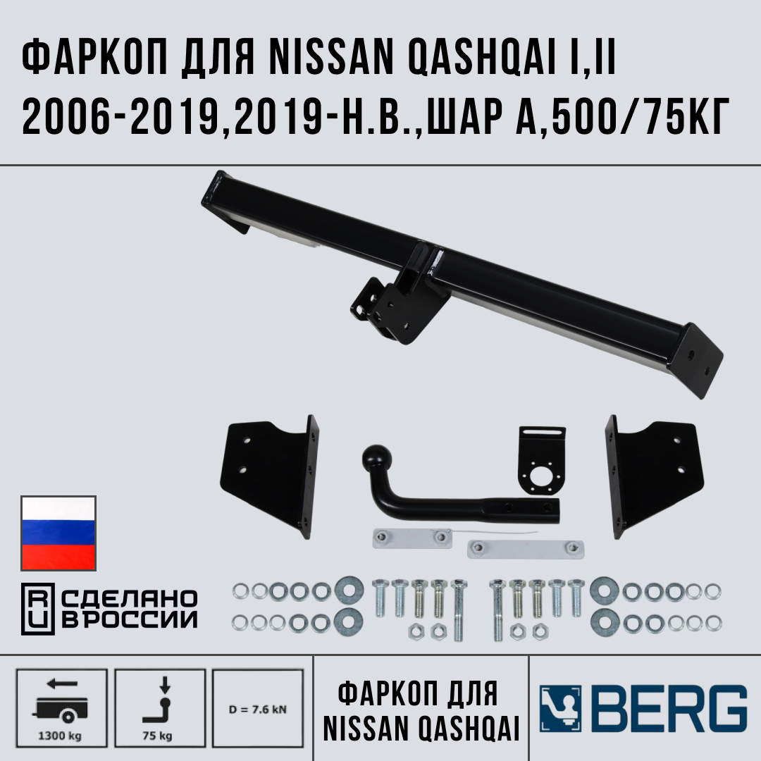 Фаркоп RIVAL. Nissan Qashqai (2006-2013, 2014-2019, 2019-),шар А, 1800/75 кг