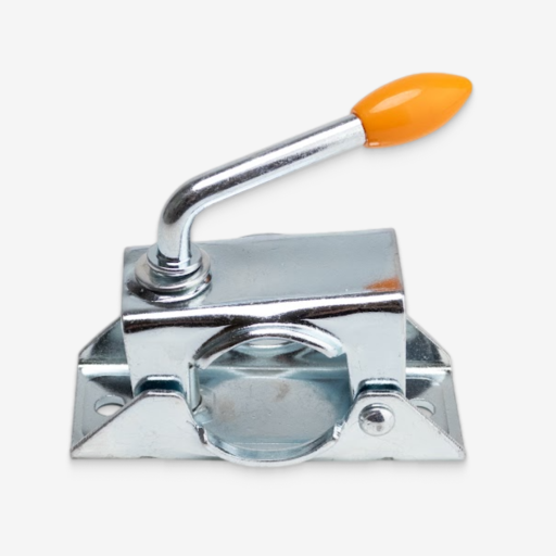 Хомут опорного колеса TRAILERCOM с диаметром 48 мм и оранжевой ручкой демонстрирует надежность и удобство в использовании.