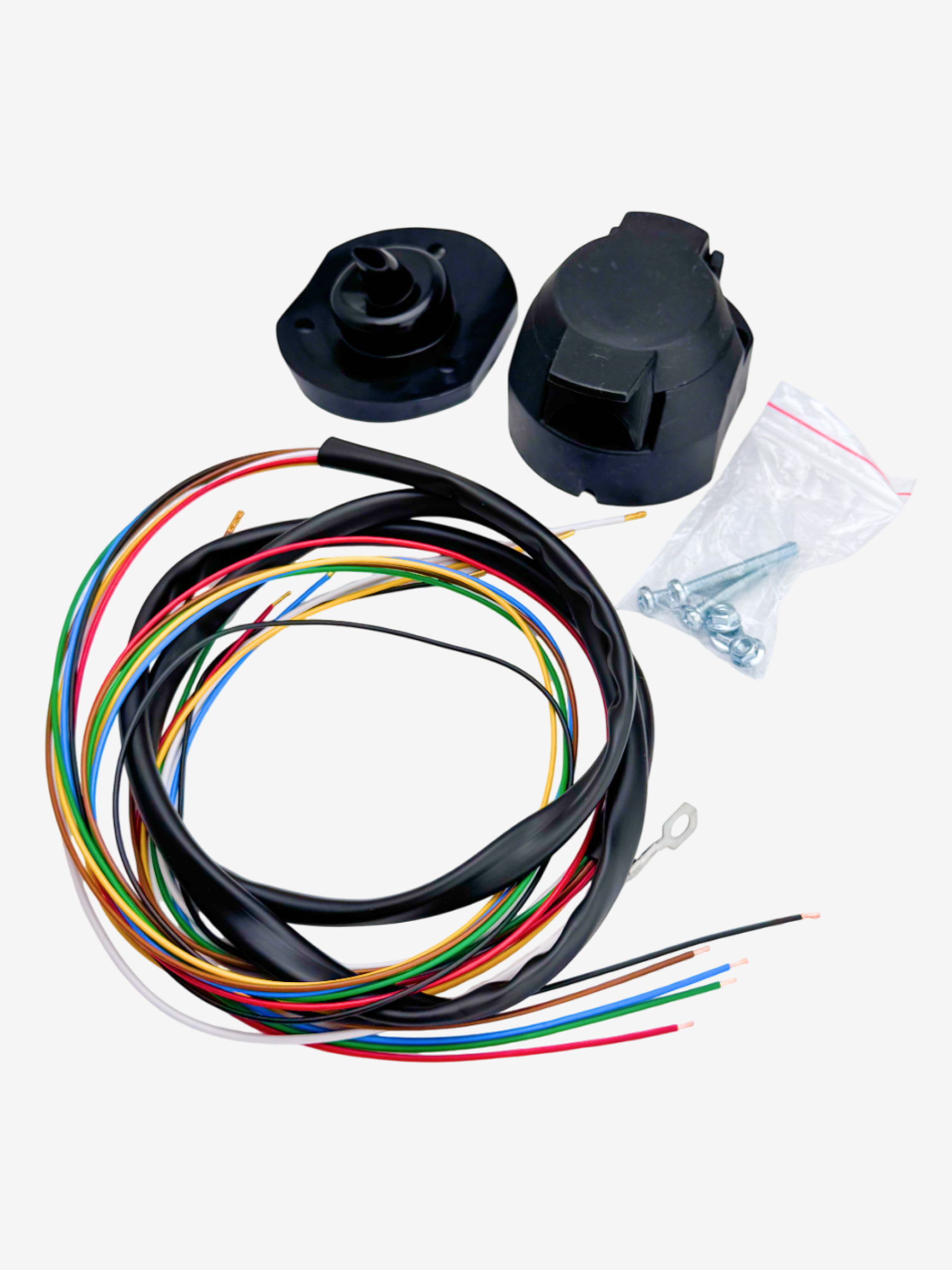 Универсальный комплект электрики для подключения фаркопа (розетка 7-pin + электропроводка 1,9 метра) - это надежное и функциональное решение для вашего автомобиля. Комплект обеспечивает стабильную работу и долговечность благодаря следующим преимуществам: