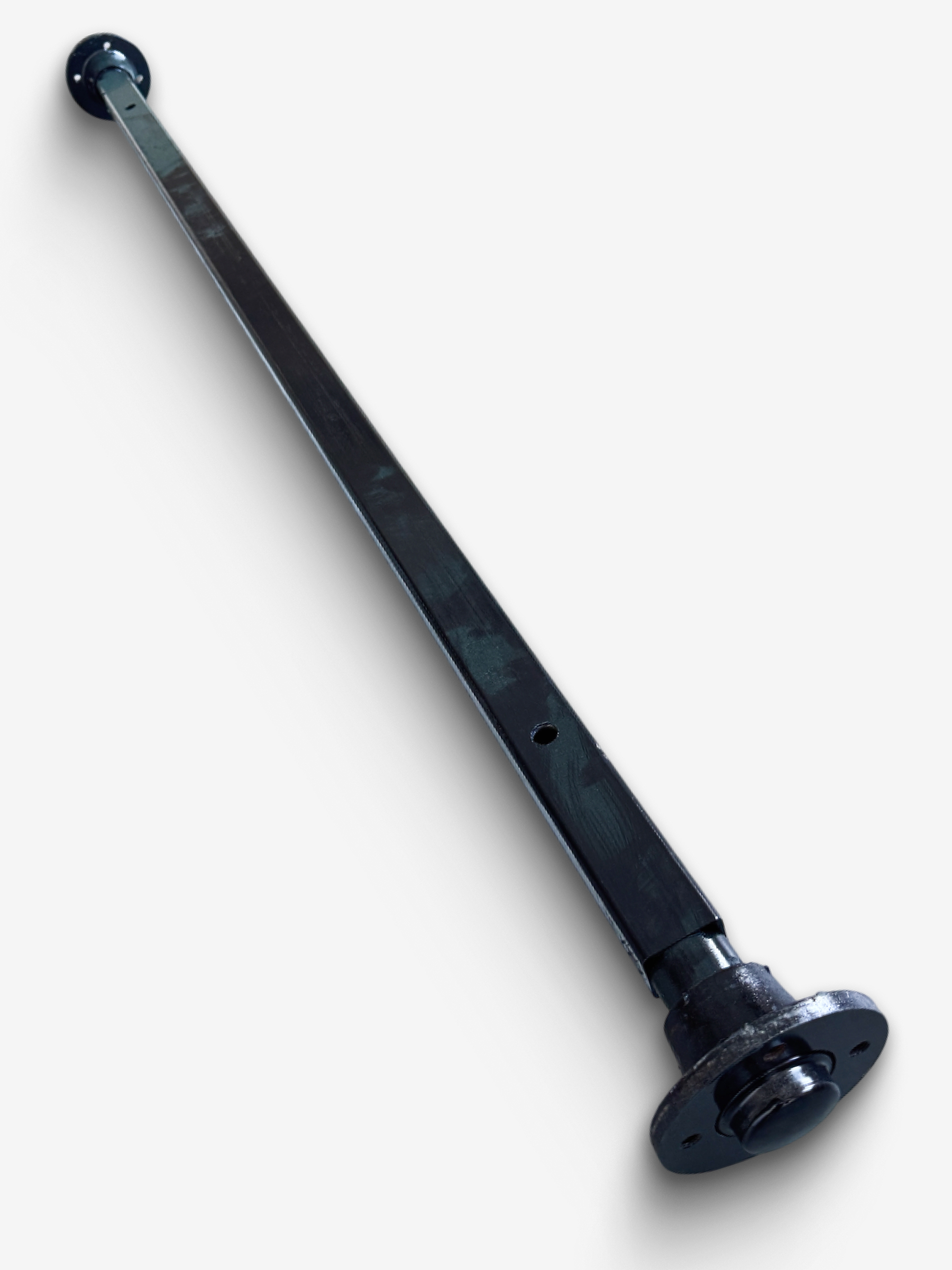 Конструкция оси выполнена из усиленной толстостенной трубы 50х50 мм с толщиной стенки 4 мм, что гарантирует повышенную прочность и устойчивость к деформации. На выбор в сборе используется качественная стальная штампованная ступица от ВолгаАвтоПром с разболтовкой 4*98. и 5*139,7, болт М12х1,5 и подшипником 30*60*37 — это проверенные комплектующие с отличным ресурсом.