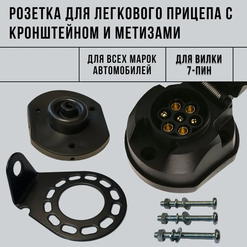 Розетка влагостойкая с пыльником для прицепа с кронштейном крепления и метизами