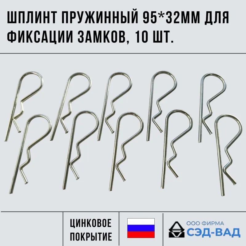 Шплинт пружинный 95х32 мм универсальный для фиксации замков, 10 шт.