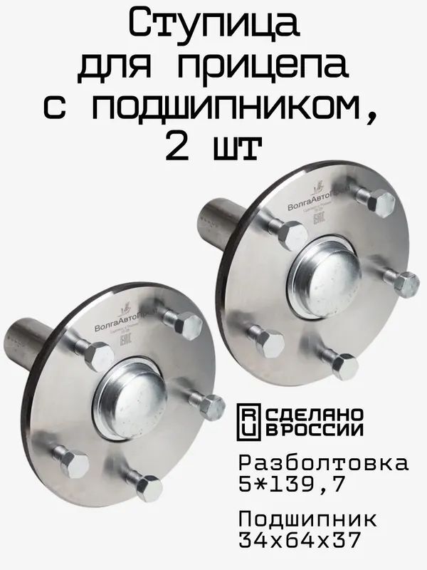 Ступица для прицепа 5*139,7 с подшипником 34х64х37 для колес R15,R16, 2 шт