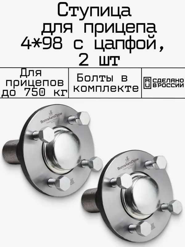 Ступица для прицепа 98x4 с подшипником 30х60х37, с увеличенным диском, 2 шт.