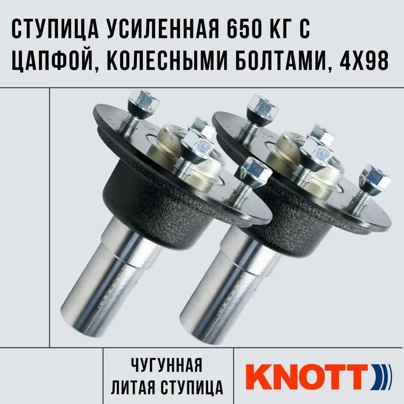 Ступица в сборе усиленная 650 кг с цапфой 2 шт., колесными болтами, 4х98 мм KNOTT